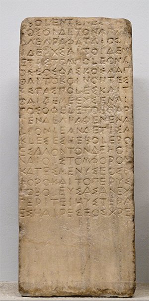 Фрагмент афинского декрета о сборе дани с членов Делосского союза. Британский музей, Лондон