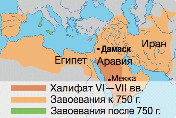 ОБРАЗОВАНИЕ ХАЛИФАТА. Арабским халифатом называют исламские государства, существовавшие в VII–XIII вв. (630—1258). Они признавали духовную власть халифов – наместников пророка Мухаммеда (571–632). Первое из них было основано самим Мухаммедом на Аравийском полуострове в 630 г. Его общественный строй базировался на заповедях ислама – новой для того времени религии, которую приняли большинство местных арабов-кочевников.