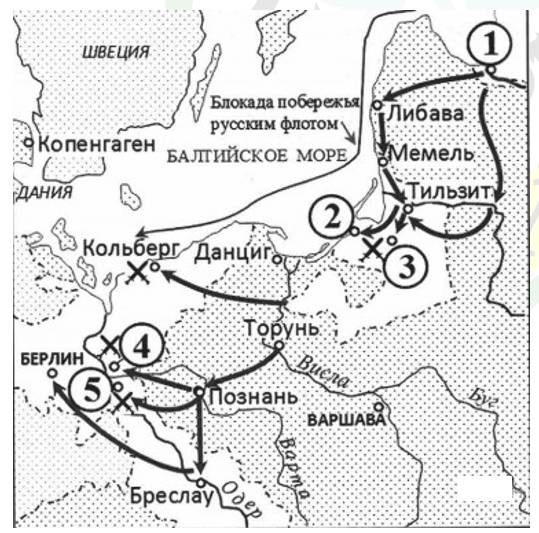 2) В сражении у города, обозначенного на схеме цифрой «5», главнокомандующим русской армии был Петр Салтыков.