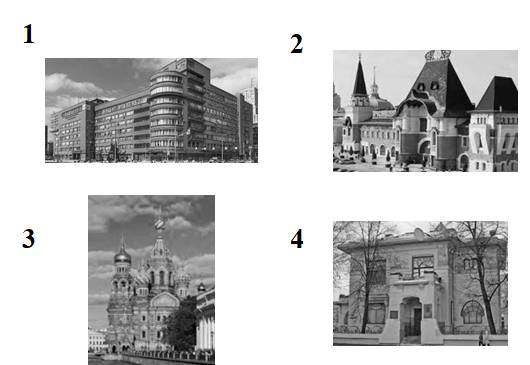 16. Какой из представленных памятников архитектуры создан в период события, которому посвящен плакат? В ответе запишите цифру, которой обозначен этот памятник архитектуры. Напишите фамилию архитектора.