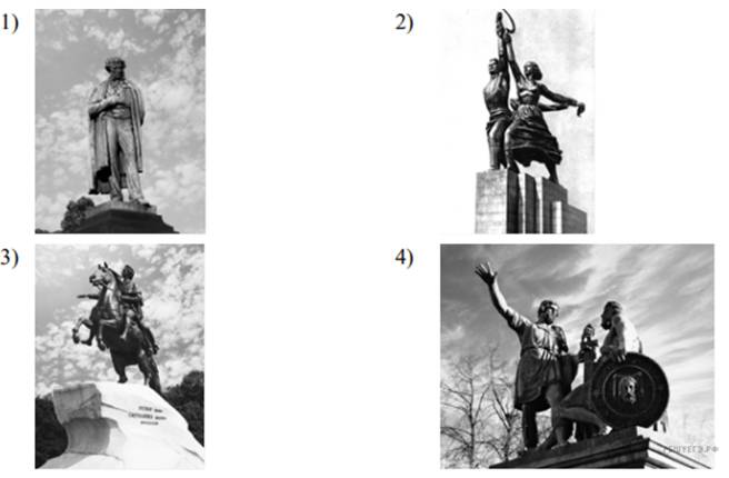 16. Какой из представленных ниже монументов был создан позже события, юбилею которого посвящена монета? В ответе запишите цифру, которой обозначен этот монумент. Укажите название данного монумента