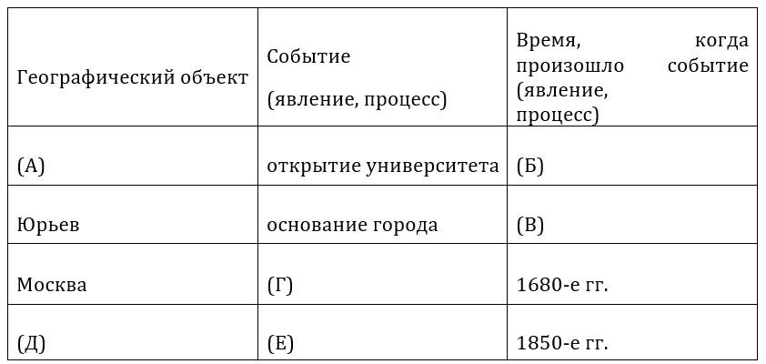 4. Заполните пустые ячейки таблицы, используя приведённый ниже список пропущенных элементов: для каждого пропуска, обозначенного буквой, выберите номер нужного элемента.