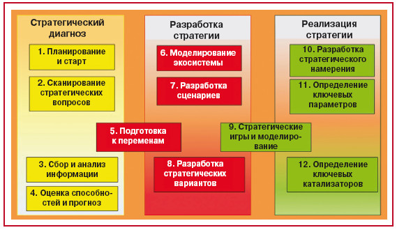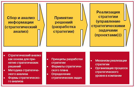 Наиболее информативной характеристикой подхода тех или иных авторов к пониманию сути стратегического управления является определение ими его структуры и этапов.