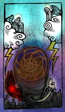 6. Перенесите внимание на верхнюю часть карты. На небе два ангела. Мысленно попросите их разорвать те нити, которые вам мешают. Спросите их могут ли они остановить ваше торнадо?
