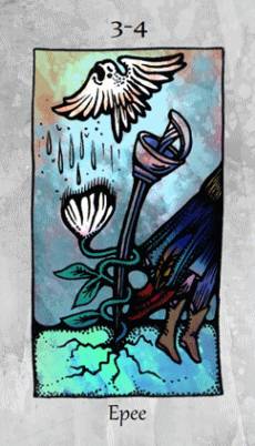 2. Меч – Когда мы осознаем многие вещи, столкновения неизбежны с самим собой. Гармония приходит после боя, ценою потерь. Нельзя понять ценность света, не оказавшись полностью во тьме. Но мы всегда выбираем сами путь и как нам относиться к чему-либо.
