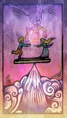 3. Мысленно представьте, что мужчина и женщина идут друг к другу. Делайте по одному шагу навстречу. После чего смотрите на ангела. В его руках весы, он уравновешивает их. Затем снова шаг, пока мужчина и женщина не окажутся в одной точке. На пике горы.