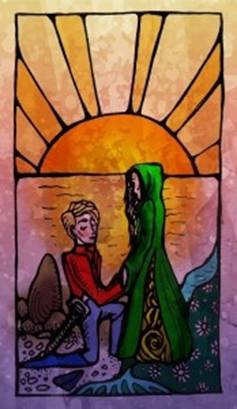 3. Мы видим прекрасный цветок, который обвил шпагу и устремился вверх. Что это? Если мы вытащим шпагу, что произойдет с цветком? Сделайте паузу, подумайте тщательно о вопросах и какие вы можете дать ответы. Если в силах продолжать смотрите дальше