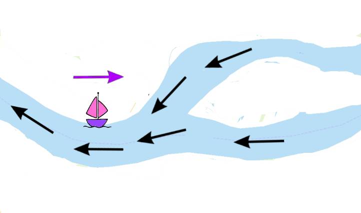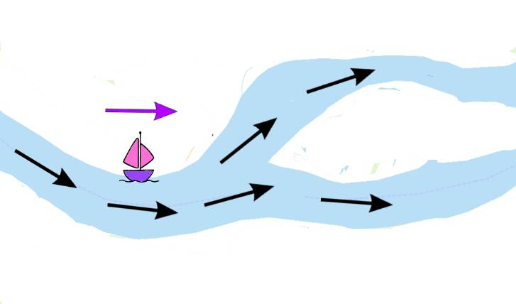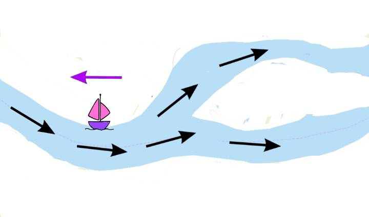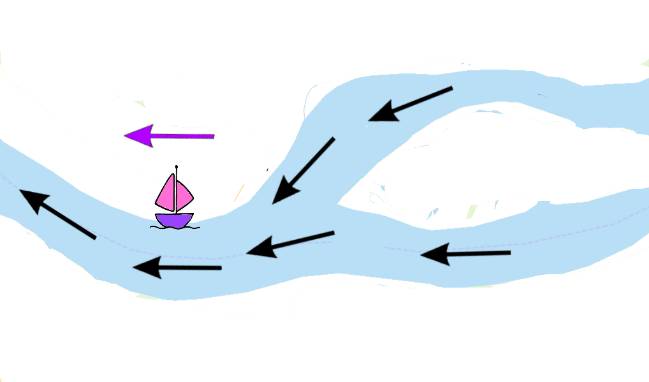 Скорость осознания и роста личности. Сила поддержки или сопротивления со стороны в зависимости от направления движения и течения реки.