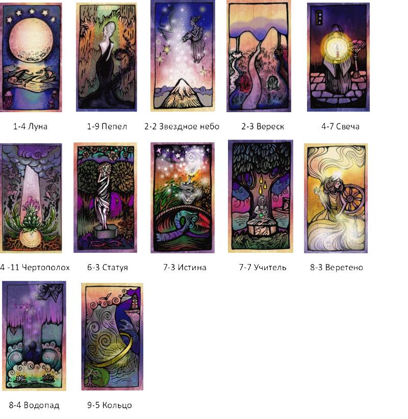 Стоит еще обратить внимание на информацию в главе Настройка на карты, по сути, в данном разделе предлагается первая полу медитативная практика, которая ссылается на карту 1-9 Пепел. Изучите её.