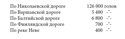 В снабжении столицы убойным скотом принимают участие следующие железные линии: Николаевская4, Варшавская, Балтийская и Финляндская.