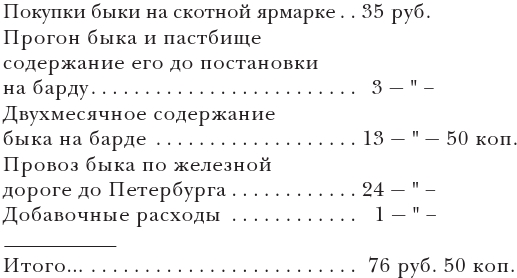 Общая стоимость откормленного бардою быка и поставленного на площадку в Петербург будет следующая:
