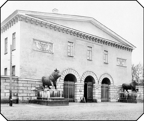 Любопытно присмотреться к технике убоя быков. Заметим, что во многих местах России, а отчасти и в Москве, придерживаются старинной техники убоя: привязав быка, со всего размаха обухом топора бьют его по лбу. Это делают с той целью, чтобы вышибить у быка память и затем, якобы в беспамятном положении, перерезывают ему горло. При подобном способе убоя нередко случалось, что бык, оглушенный топором, срывался с привязи и с не-описанною яростию бегал по двору, поддевая на рога все, что попадалось ему на пути. Такой способ практиковался раньше и в Петербурге, но лет 20 тому назад один из ветеринарных врачей столицы изобрел новый способ убивать быков. Исходя из того положения, что надо при убивании быка по возможности ослабить болевые ощущения его, он предложил чрез затылочную дыру в черепе прокалывать головной мозг быка, поражать, так сказать, в самый узел жизни. При этом способе убоя смерть должна происходить моментально.