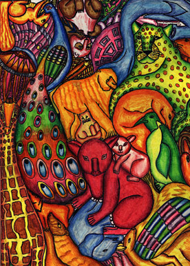 Есть в Интернете галерея детского творчества www.newart.ru, и в этой галерее много рисунков, про которые хочется сказать что-то хорошее, тёплое или смешное. Вот этим я и занимаюсь в данном разделе. На правах старшего болтливого товарища. Рецензирую, так сказать.