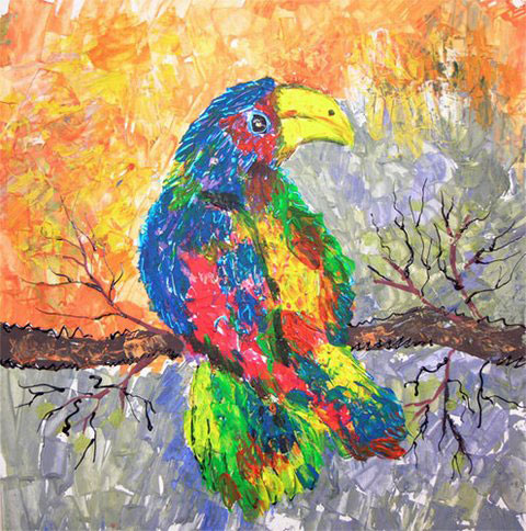 Сижу на ветке, как король на троне.Вокруг меня засохшие сучки.Ни коготь, ни стрела меня не тронет.Я нарисованный! Учитесь, новички.