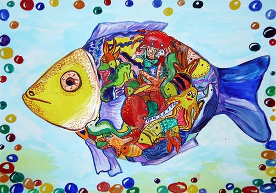Рыба вышла из воды,Из своей родной среды.Подышать открыла рот —Рот её похож на грот.А в него послушным маршемГуманоидов ведут.Чтобы супом стать и кашейИх в желудке перетрут.Ой, боюсь такой развязки,Так бывает только в сказке.Раз, два, три… мой страшный сон,Растворись и выйди вон.