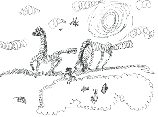 Кто же здесь изображён?Однозначно, что не слон.Это даже не верблюд,Этот горб не так уж крут.Подключив воображеньеБатарею отопленьяНачинаю смутно видеть…Ох, маэстро б не обидеть.Хорошо. Прочту названье…О, приплод в зверином стане!Новые в лесу соседи —Гусеничные медведи!