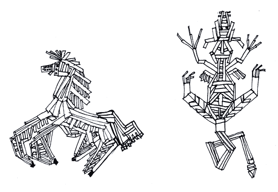 Новый вариант коней —Из дощечек, без гвоздей,Без подвязок и без клея.Наш художник все смелее…