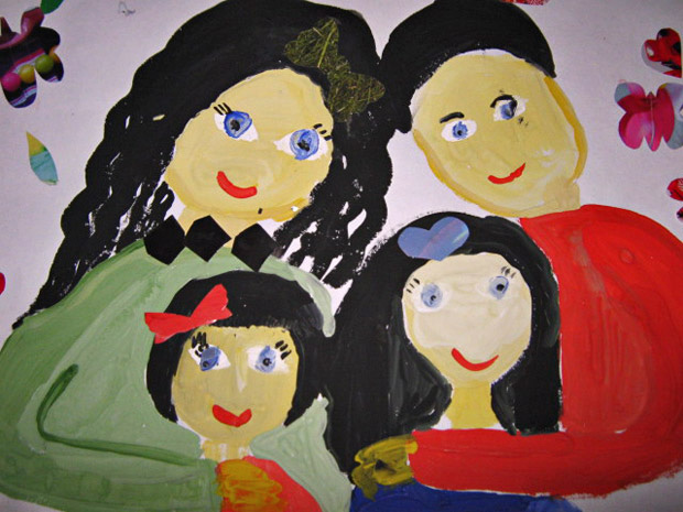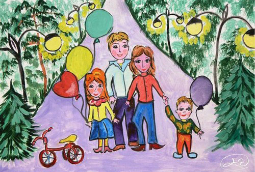 На этой картине семейный портрет —Мама, и папа, и дочка трёх лет,Дочка еще лет пяти иль семи.Желаю успехов в жизни семьи.