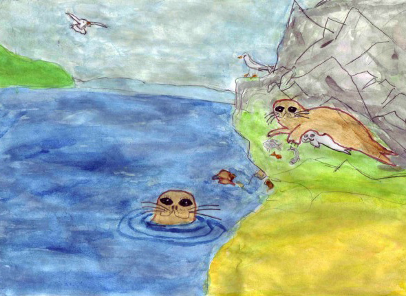 Неплохо тюленям живется во льдах —Мама с ребенком, папа – в трудах.
