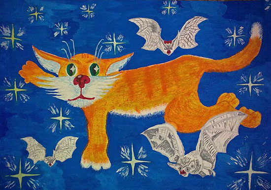 Удивляется народ:– В небеса поднялся кот?Поражаются крыланы:– Есть коты-аэропланы?Даже звездочка дивится:– Кот летает словно птица!Только Глеб не удивлен —Знает он, что это сон.