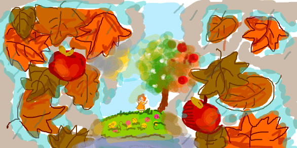 Осень прекрасна, яблоки красныПадают с неба как град.Девочка рада – это наградаЗа то, что любит свой сад.