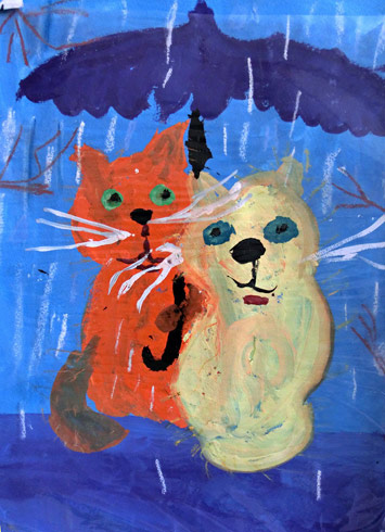 Дождик, лей, дождик, лей!Зонтик синий не жалей!Пожалей лишь двух котят,Что под зонтиком стоят.
