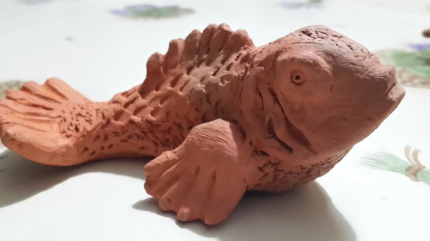 Искусство малых формДоступно малым детям.Из глины, пластилинаЛепят всё на свете…И ёжика с дракончиком,И рыбку, и овечку.Спасибо Юре Рыбкину —Такому человечку.