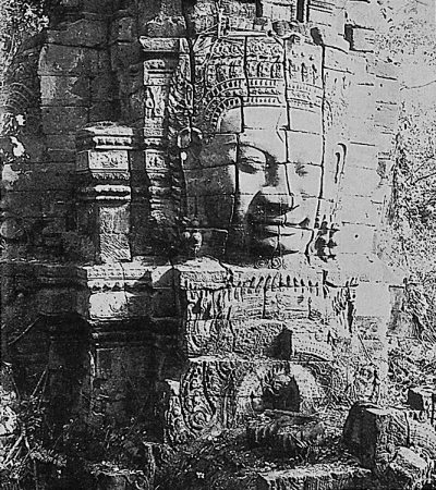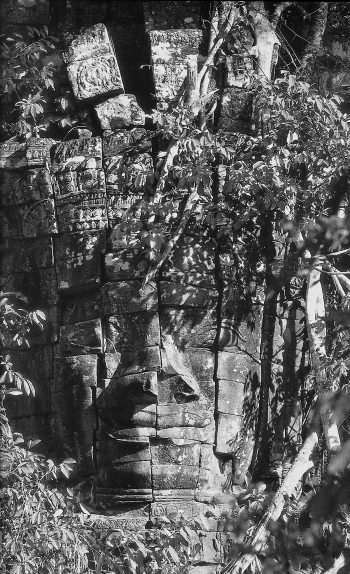 Рис. 1.2a. Статуя Будды Авалокитвара. Ангкор. Камбоджа. Корни и ветви деревьев, оплетающие памятник, быстро его разрушают. Взято из [167], с. 7.
