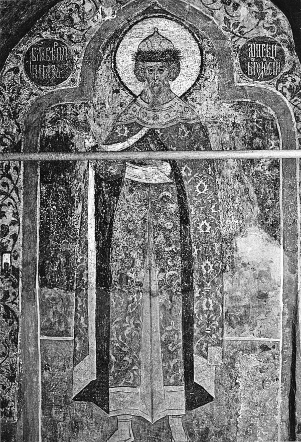 Рис. 7. Великий князь Андрей Боголюбский. Он же император Андроник-Христос, он же апостол Андрей Первозванный. Фреска в Архангельском Соборе Московского Кремля. Взято из Интернета.