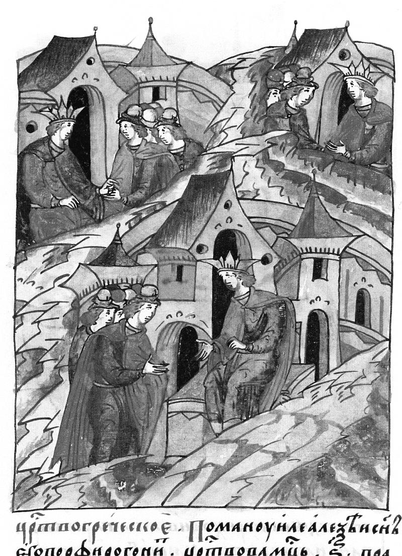 Так что данных мало. Однако нам рано расставаться с Ольгой. Сейчас поможет знаменитый Русский Лицевой Летописный Свод и наш анализ известной истории святых Петра и Февронии. В книге «Курган Христа и Богородицы. Тристан и Изольда», гл. 3, мы показали, что известная русская повесть о Петре и Февронии-Ефросинии – это рассказ о Георгии Победоносце и Марии Богородице (а также о Христе). Русские святые – князь Петр-Давид и Феврония-Ефросиния жили на рубеже XII–XIII веков. Здесь Петр (Давид) – это отражение Иосифа = Гора = Георгия Победоносца (и Христа-Гора), а Феврония-Ефросиния – это отражение Богородицы.