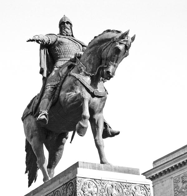 ♦ То обстоятельство, что Юрий Долгорукий отразился в летописях как Георгий Победоносец, мы видим в постоянных упоминаниях, что князь Юрий-Георгий – это воин, солдат, витязь, богатырь. «Ростовский Летописец» на каждом шагу называет Юрия Долгорукого ЛАТНИКОМ, закованным в ДОСПЕХИ ВОИНОМ, с. 194 и далее. Термины «латник» и «доспехи» постоянно чередуются. То и дело говорится о великих битвах князя Юрия, о его победах над врагами и соперниками, о его военном духе и властолюбии, о продолжительных жестоких войнах, с. 199 и далее. Яркими мазками рисуется масштабная эпическая картина.