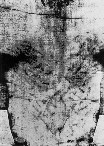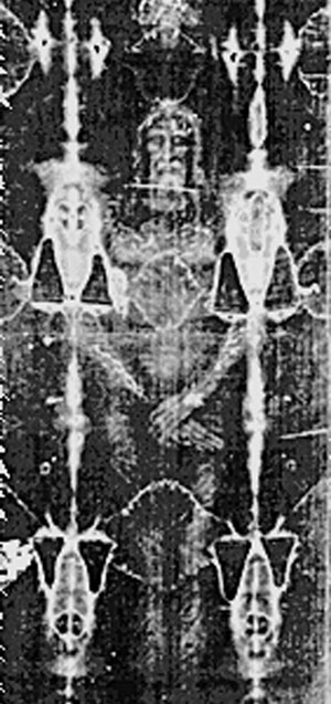 Рис. 1.15. Негативное изображение на Туринской плащанице. Передняя половина, накрывавшая тело сверху. Взято из Интернета