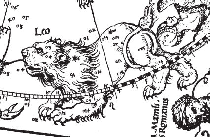 Рис. 1.32 Зодиакальное созвездие Льва на звездной карте А. Дюрера. Взято из [21], с. 8, илл. 1.