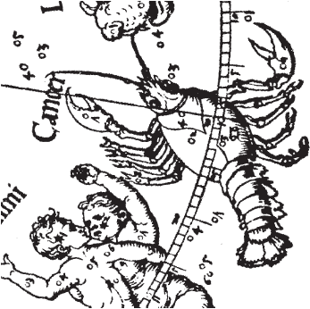 Рис. 1.41 Зодиакальное созвездие Рака на звездной карте А. Дюрера. Взято из [21], с. 8, илл. 1.