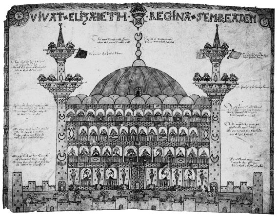 Рис. 1.4. Старинное изображение храма Святой Софии, сделанное англичанином, бывшим в плену у османов-атаманов, и относимое к эпохе королевы Елизаветы I, 1596–1662. Надо сказать, что оно заметно отличается от изображений храма Святой Софии в XIX—XX веках. Взято из [101], с. 44