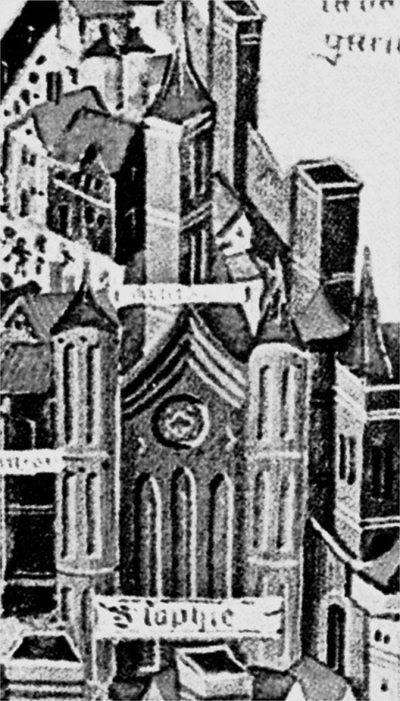 Рис. 1.6. Увеличенное изображение храма Святой Софии с миниатюры XV века. Совершенно четко видно, что перед нами – готический храм. Сегодня храм Святой Софии выглядит совершенно по-другому! Взято из [101], с. 38