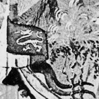 Рис. 1.8. Увеличенное изображение знамени османов-атаманов с Казанским гербом. Может быть, это лев на задних лапах, герб города Владимира = Владеющего Миром. Взято из [101], с. 38