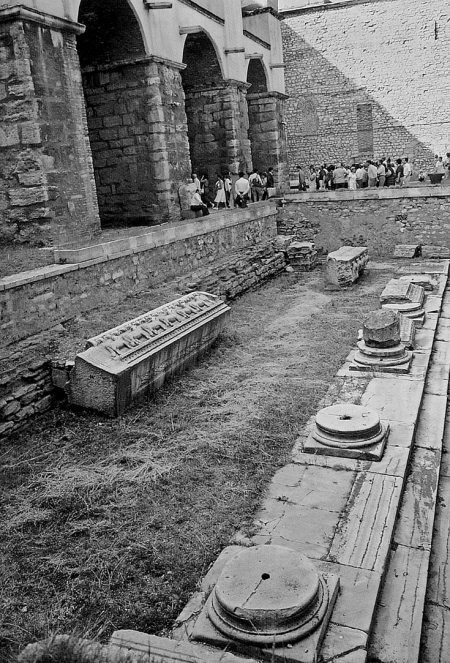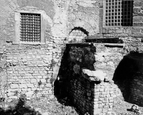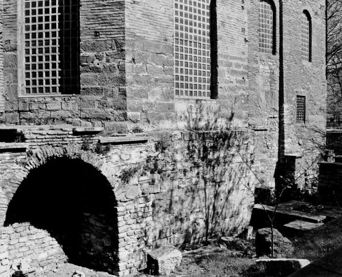 Рис. 1.14. Стена храма Святой Ирины в Стамбуле. Храм глубоко ушел в землю. Сегодня его нижняя часть раскопана и стала видна. Фотография 1996 года
