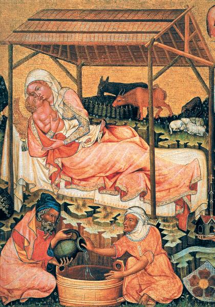 Рис. 1.8. «Рождество Христово». Мастер Вышебродского Алтаря. Якобы около 1350 года. Народная галерея. Прага. Взято из [143:0], с. 33.