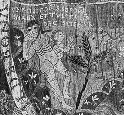 Рис. 1.18. Фрагмент ковра из собора Жероны. Ева появляется из бока Адама. Взято из [643:2], с. 193.