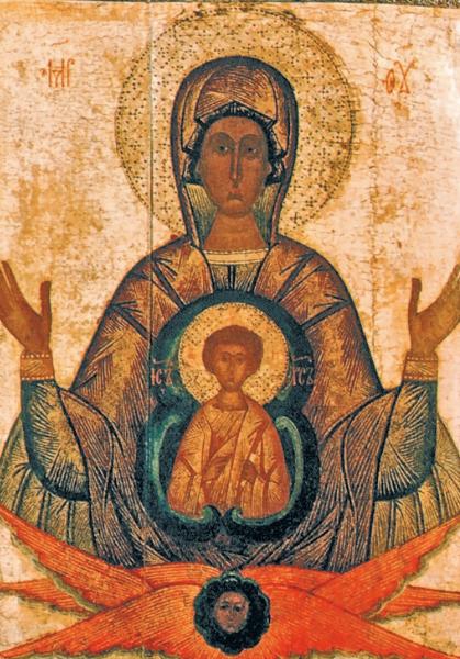 Рис. 1.33. Богоматерь Знамение. Фрагмент русской иконы XV века. Государственый Русский Музей. Взято из [745:1], с. 355, икона 726.