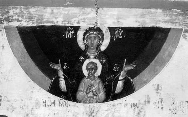 Рис. 1.31. «Знамение» (Оранта). Фреска в церкви св. Германа. Греция, г. Преспа. Церковь находится в деревне, на берегу Преспанского озера. Фотография сделана Й. Табовым в 2005 году.