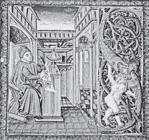 Рис. 11. Старинная миниатюра, изображающая «античного» Архимеда как средневекового ученого. Ватикан