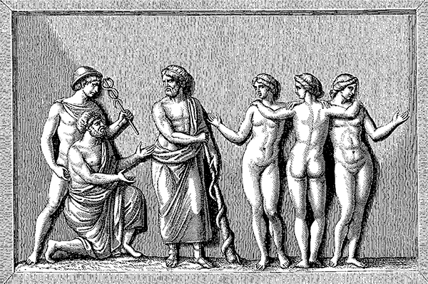Рис. 1.37. Эскулап и Грации. «Античный» барельеф. Взято из [169:0], с. 200, илл. 198.