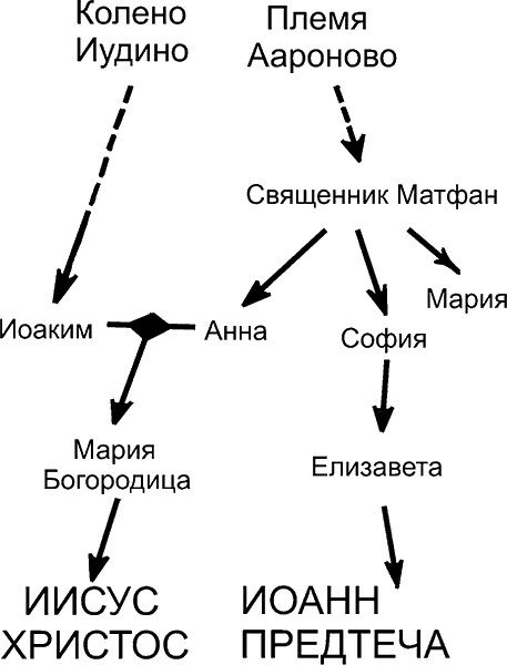 Рис. 1.41. Генеалогическое дерево, по ка зы ва ющее, что Христос и Иоанн Креститель были троюродными братьями. Составлено по [298:1].