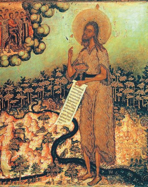 Иоанн Креститель характеризуется в Евангелиях как суровый аскет, ходивший в звериных шкурах, см. рис. 1.42, 1.43, питавшийся очень простой пищей, проповедовавший перед народными толпами.