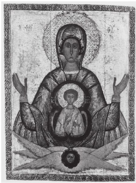 Рис. 1.9. Богоматерь Знамение. Русская икона XVI века. Государственная Третьяковская Галерея. Взято из [745:1], с. 73, икона 107.