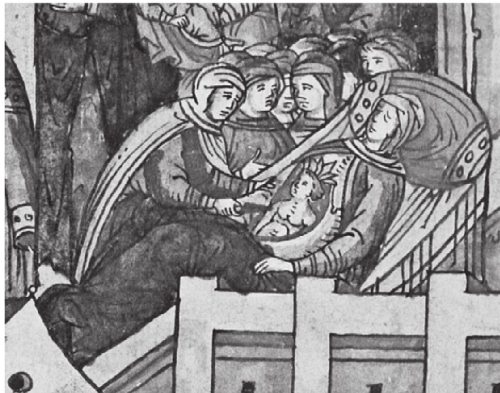 Рис. 1.11. Фрагмент миниатюры из Лицевого Свода. Из разрезанного чрева матери вынимают младенца – Кесаря (Царя). Взято из [477:3], т. 2, лист 841.
