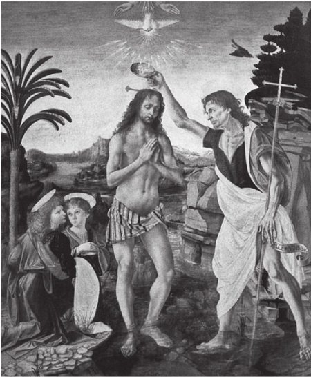 Рис. 1.12. Крещение Христа пророком Иоанном Крестителем в Иордане. Андреа Вероккьо. Якобы около 1475 года. Взято из [981:1], с. 928.