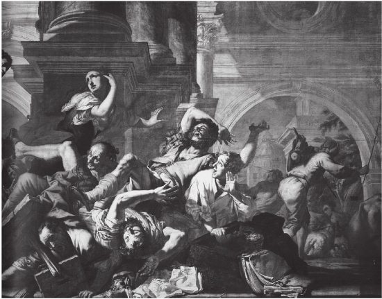 Рис. 1.14. Изгнание торгующих из храма. Антонио Дзанки. Левая половина картины. 1667 год. Взято из [122:2], с. 378, илл. 336.